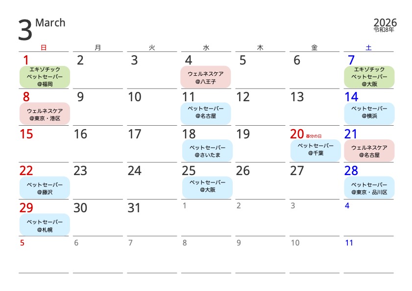 2026年3月の開催日程