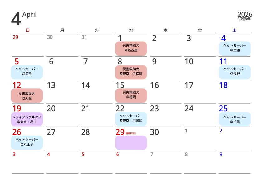 2026年4月の開催日程